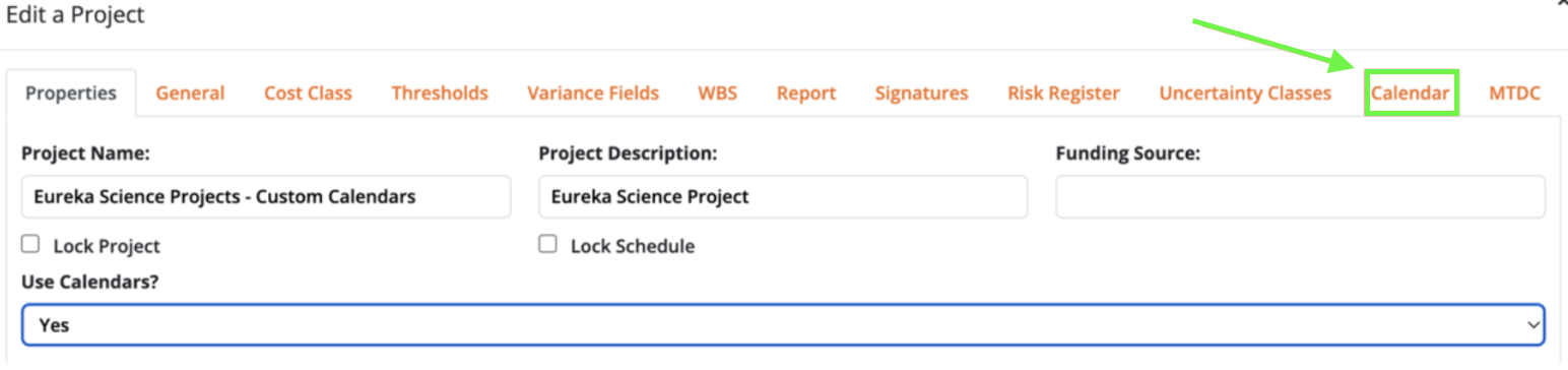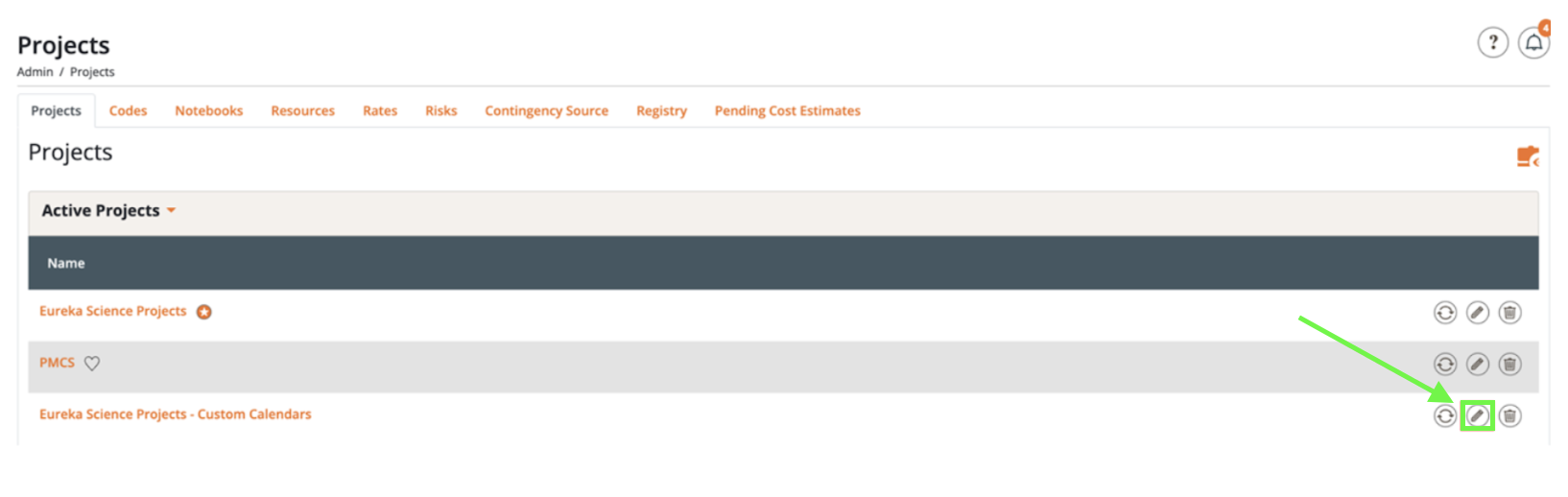 - First, Navigate to the Edit Project (Pencil icon) for the project where you want to create a custom calendar.
