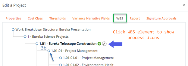 - Click the circle next to the element to collapse or expand lower level WBS element