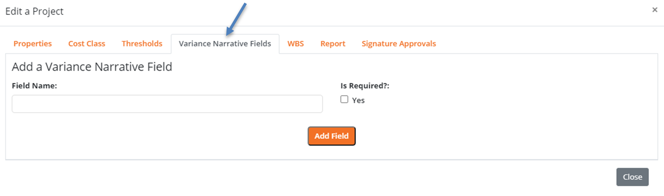 - Name the field, choose whether it is required when there is a variance, and click Add Field