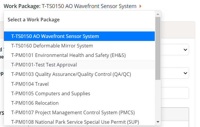 - If you have selected a WBS, the “Work Package” dropdown will only contain Work Packages associated with that WBS.