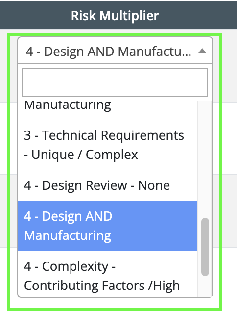 - Calculate Percentage: The software automatically calculates the risk percentage by automatically multiplying the selected risk factor by its corresponding multiplier. Adjusting any of the risk factors or multipliers will immediately update the percentage to reflect the new level of risk for that resource.