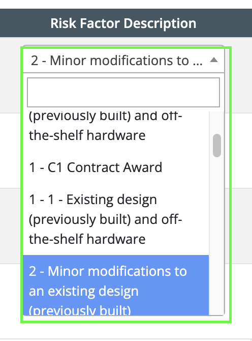 - Customize Risk Factors: Risk factors can be customized and loaded with a value and a description. Each risk factor is assigned a number from 0 to 15, with 0 indicating the lowest level of risk and 15 the highest.